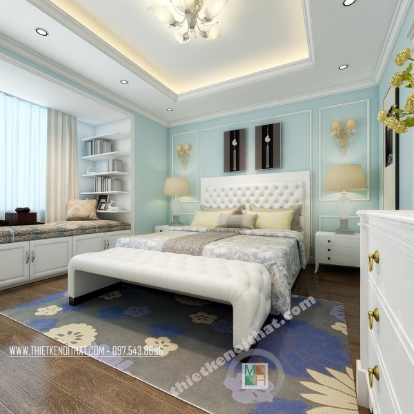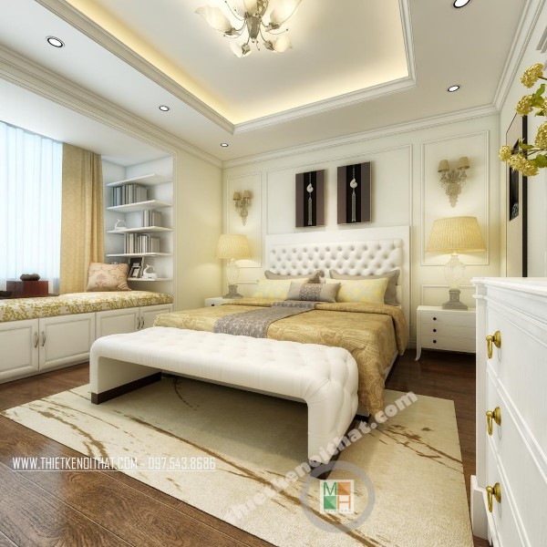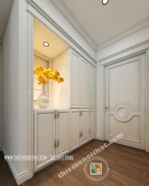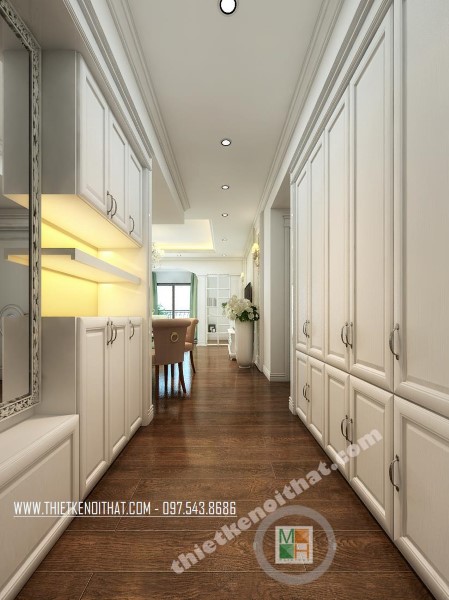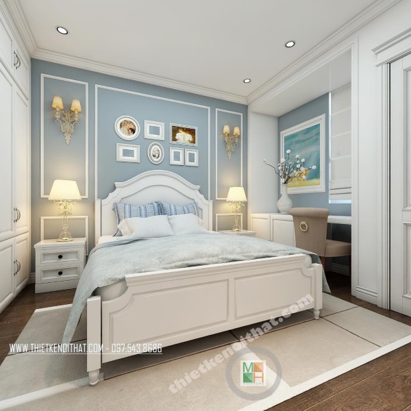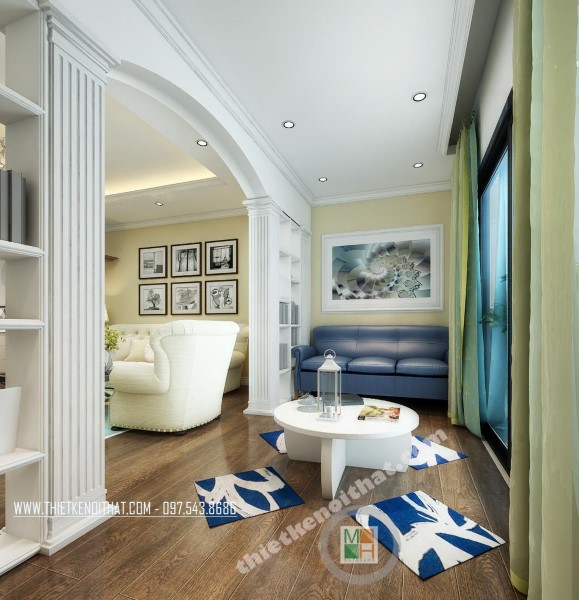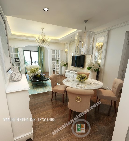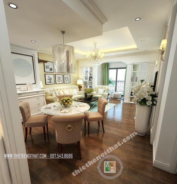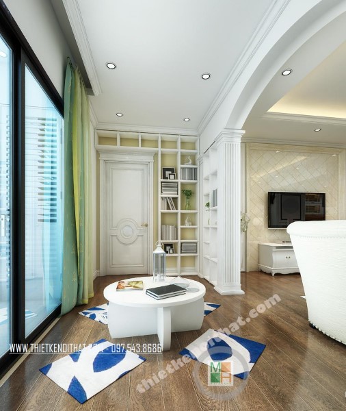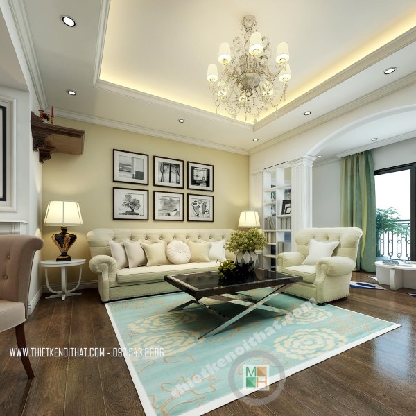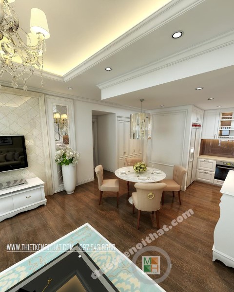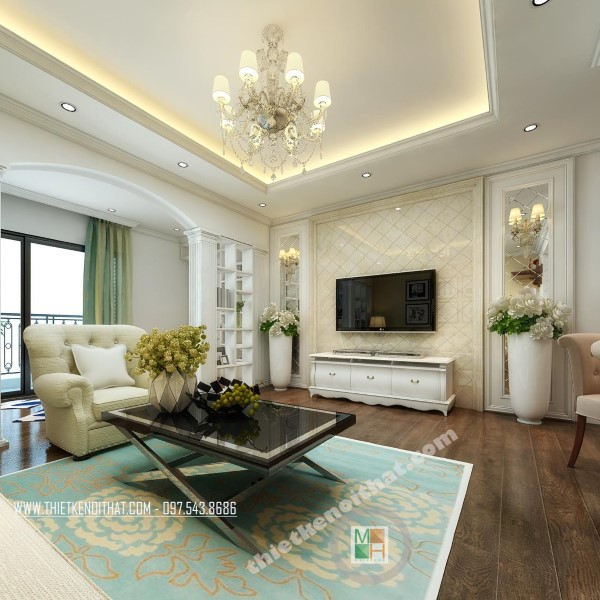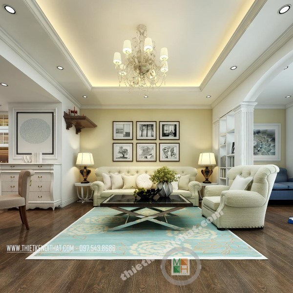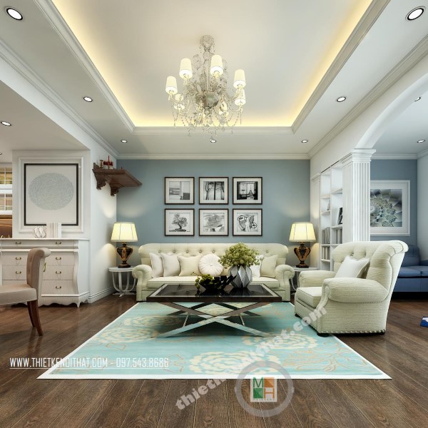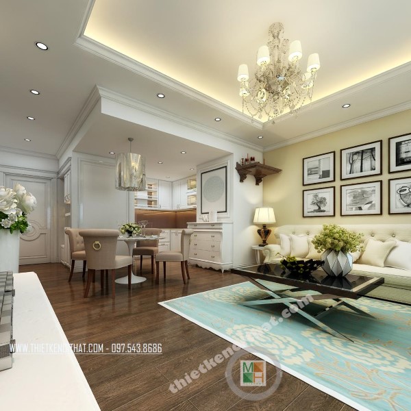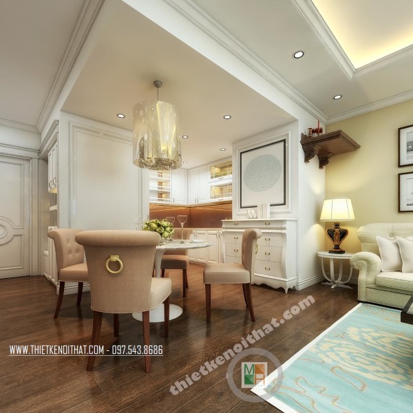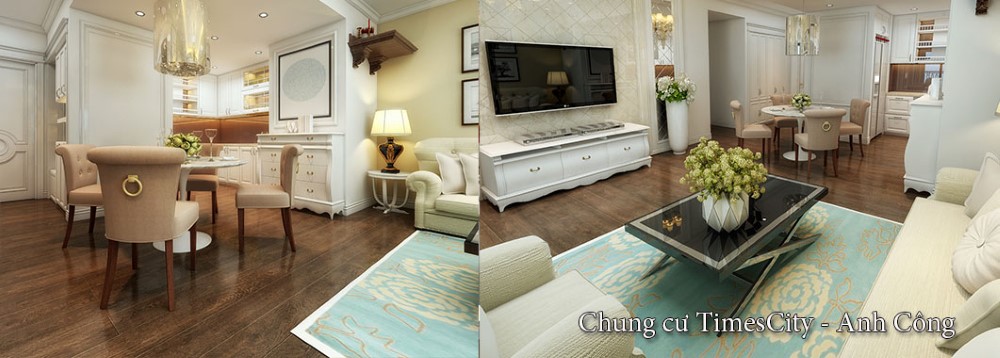 Thiết kế nội thất chung cư tân cổ điển Timescity nhấn mạnh đến các đường nét kiến trúc tinh tế và nhẹ nhàng mang đến cảm giác sang trọng và thư giãn cho gia chủ. Các chi tiết trang trí cầu kỳ, sự cân xứng của các mảng kết hợp với nét phóng khoáng hiện đại tạo ra một không gian đơn giản, tiện nghi nhưng vẫn thể hiện được sự sang trọng, quí tộc mà không quá rối mắt. Bên cạnh đó, căn hộ có 2 tông màu là tông màu vàng kem tươi sáng mang lại cảm giác thân thiện hoặc tông màu xanh dương trẻ trung để gia chủ có thể lựa chọn, tùy theo sở thích riêng của cá nhân.
