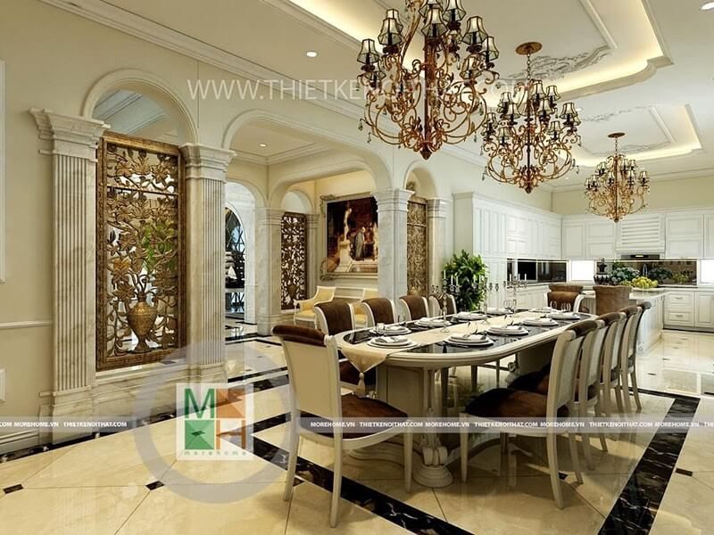 Mẫu bàn ăn gỗ tự nhiên cho phòng ăn biệt thự với thiết kế tân cổ điển sang trọng và đẳng cấp