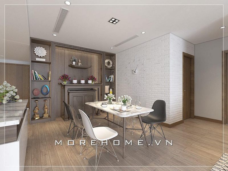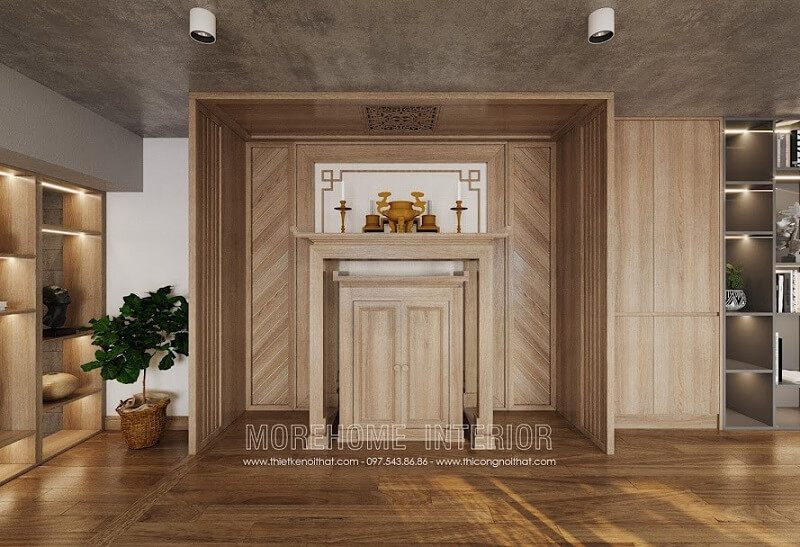 Mẫu bàn thờ hiện đại với thiết kế nhỏ gọn, chắc chắn được đóng tại xưởng gỗ nội thất MoreHome
