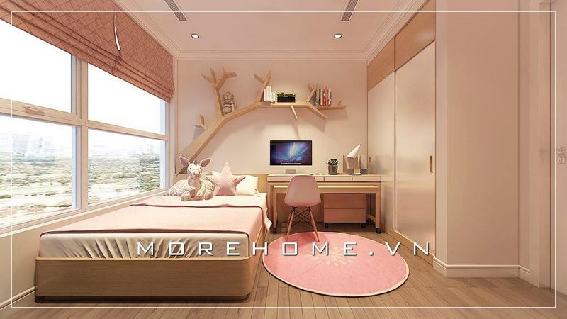 Phòng ngủ với gam màu tươi sáng tinh tế chủ đạo, khiến căn phòng của nàng công chúa nhỏ bé của các bố mẹ trở nên hiện đại và dễ thương hơn bao giờ hết