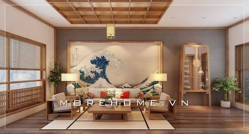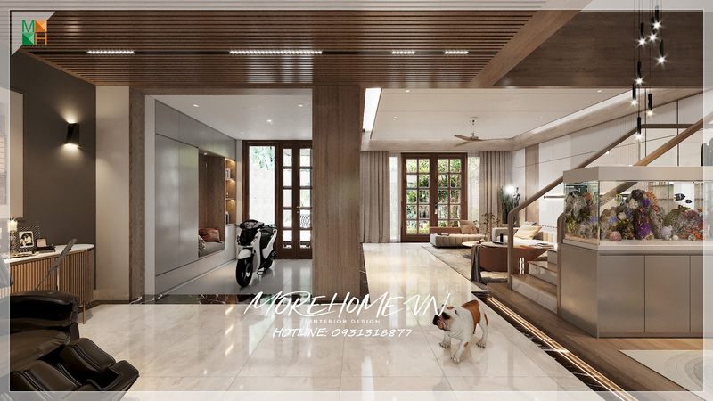 Thiết kế nội thất phòng khách nhà phố phong cách hiện đại xen lẫn nét Á Đông