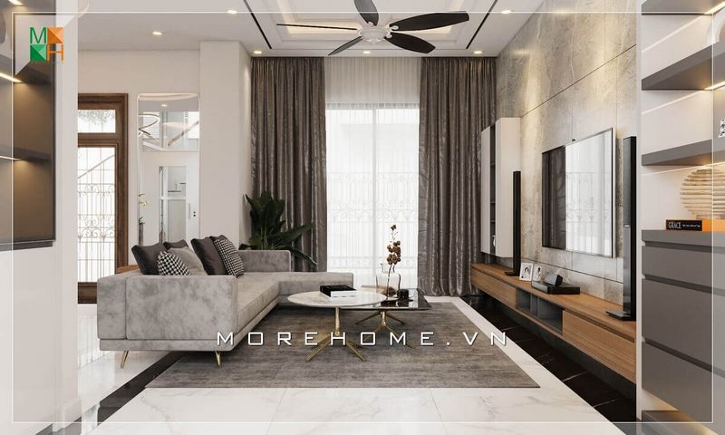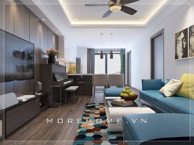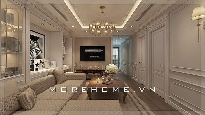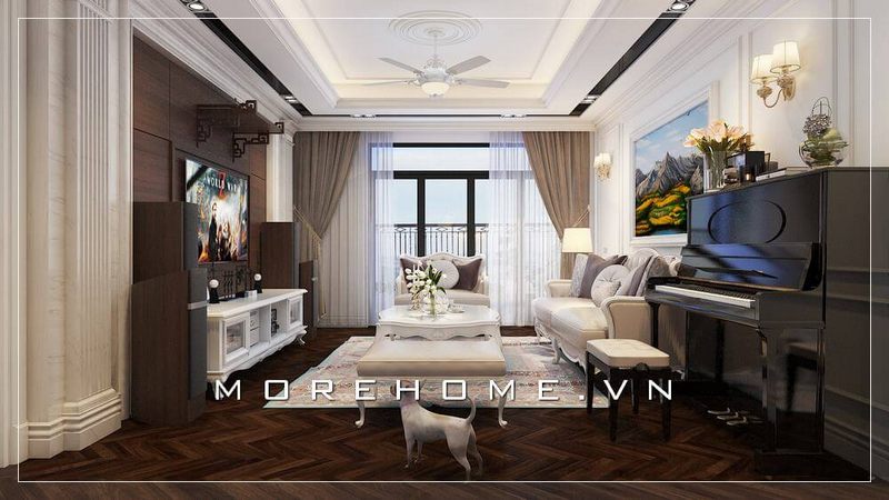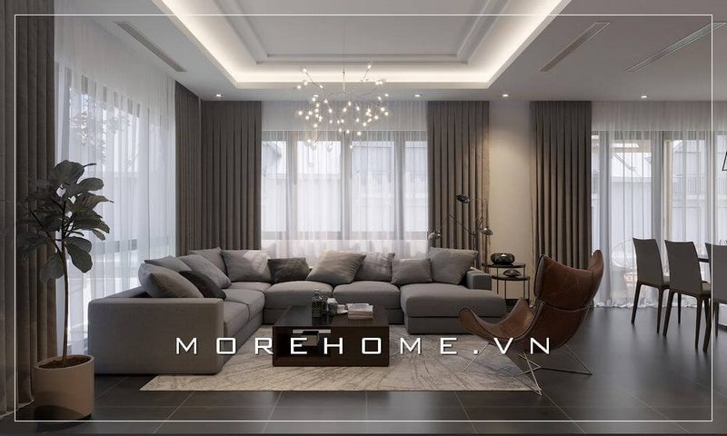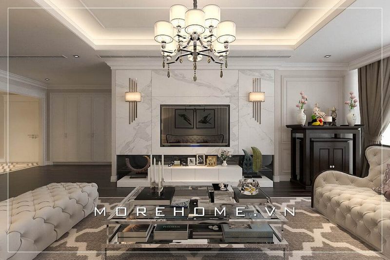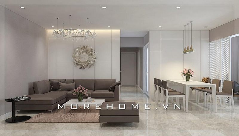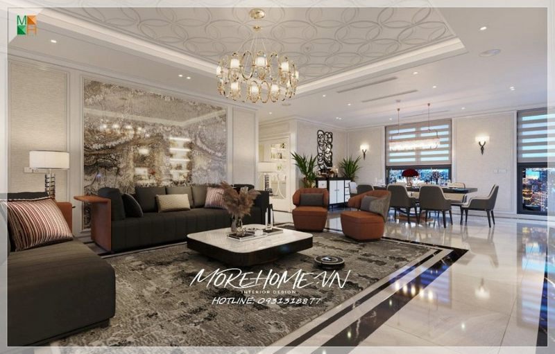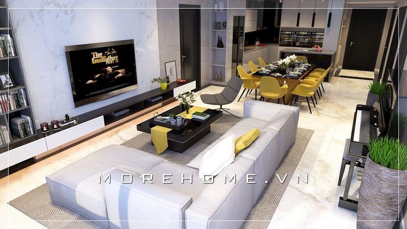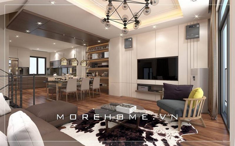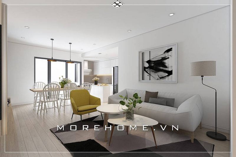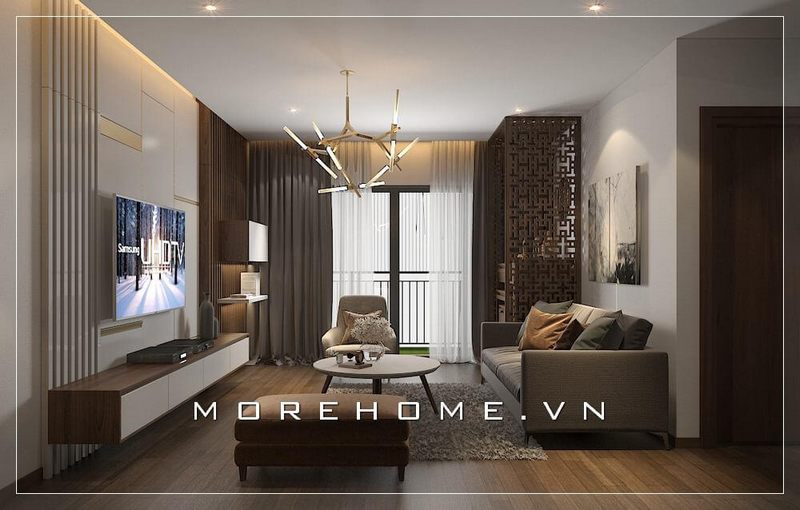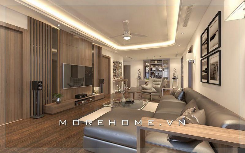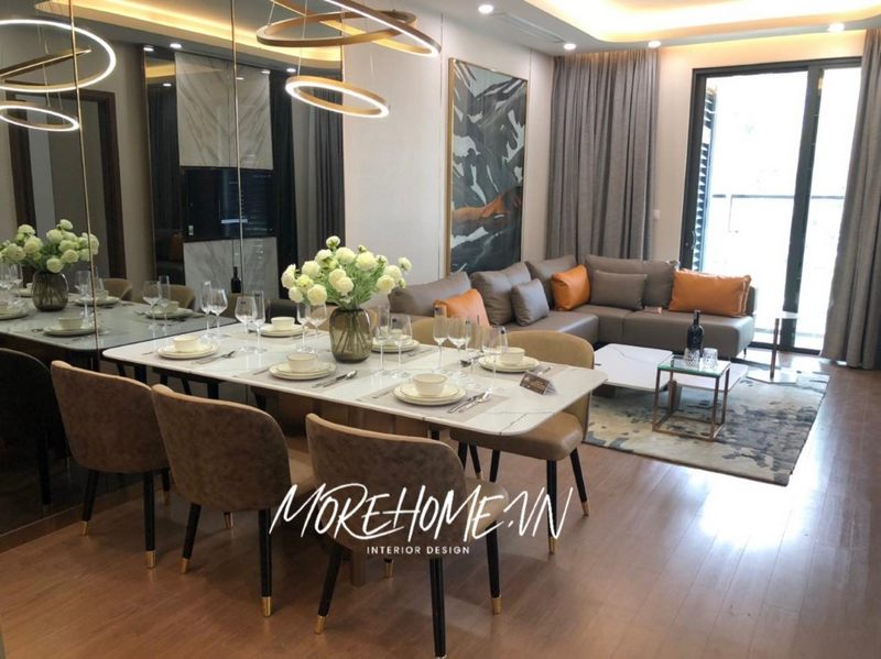 Với kiểu dáng thiết kế hiện đại mẫu thiết kế phòng khách chung cư của Morehome luôn nhận được sự ưu ái và ủng hộ của đông đảo khách hàng.