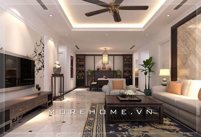 Tham khảo và chiêm ngưỡng mẫu thiết kế phòng khách liền phòng thờ chung cư đẹp sang trọng và ấn tượng cho không gian sống của gia đình.
