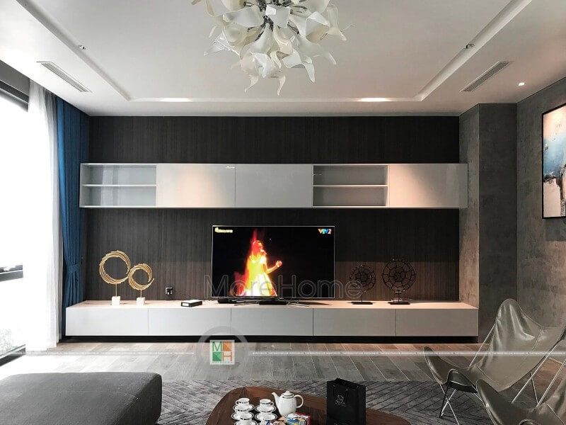 Sản phẩm công trình thi công thực tế kệ tivi hiện đại cho phòng khách biệt thự Vinhomes Riverside Long Biên Hà Nội