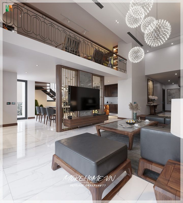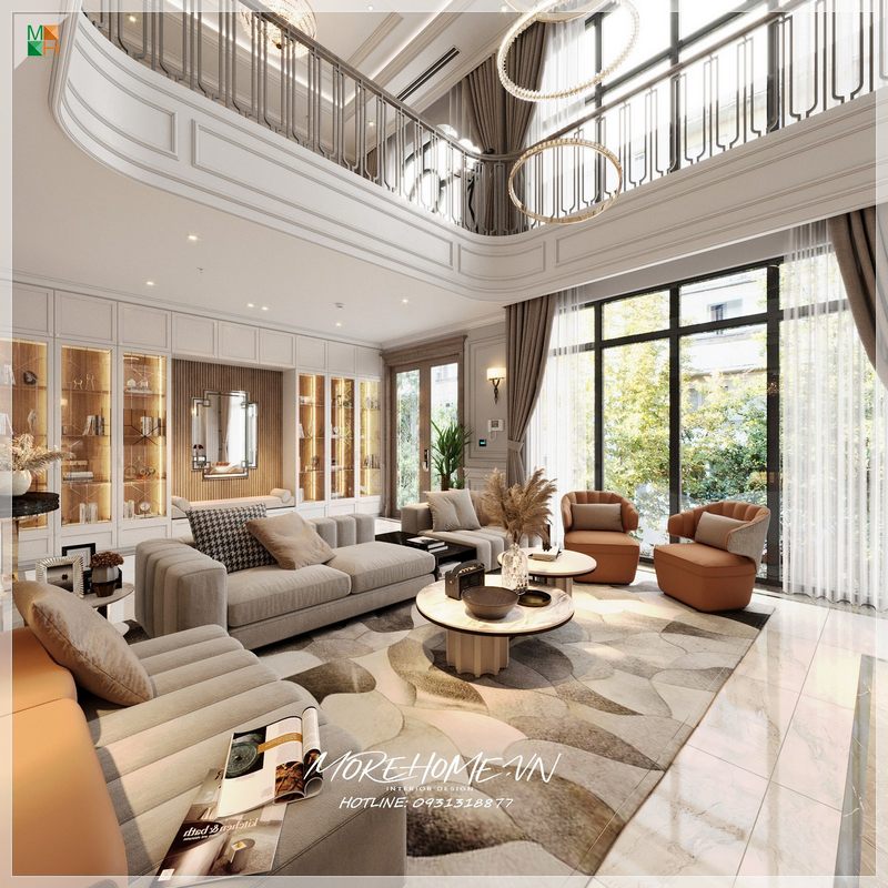 Gợi ý mẫu thiết kế phòng khách biệt thự thông tầng đẹp, sang trọng cho tổ ấm của gia đình thêm ấn tượng.