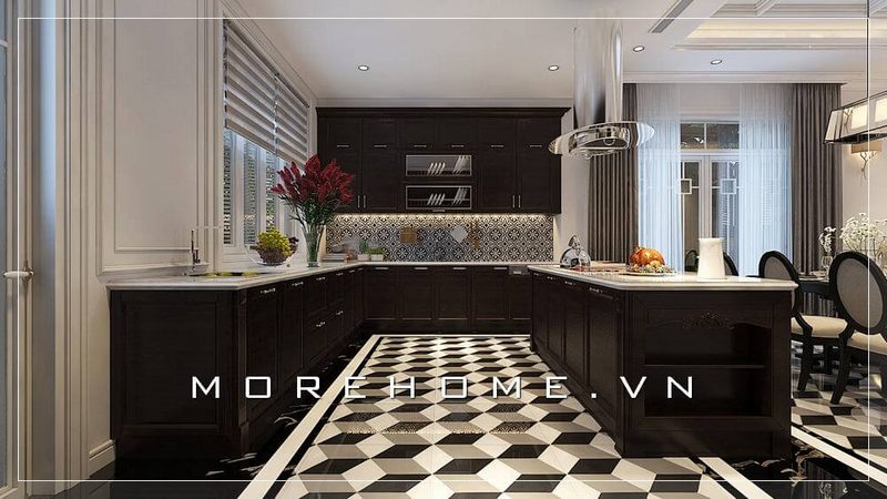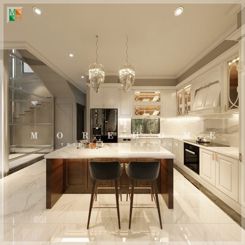 Biệt thự cao cấp Mỹ Đình được trang bị nội thất bếp theo phong cách tân cổ điển sang trọng.