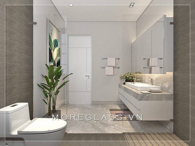 Một điểm nhấn thú vị trong thiết kế hiện đại là việc tích hợp công nghệ thông minh vào không gian này. Từ những vòi sen tự động đến hệ thống đèn LED điều chỉnh độ sáng, tất cả đều góp phần làm tăng tiện ích và nâng cao trải nghiệm sử dụng. Bạn cũng có thể bổ sung các yếu tố xanh như cây cảnh nhỏ hoặc tranh treo tường có chủ đề thiên nhiên, giúp cân bằng giữa sự hiện đại và sự gần gũi với thiên nhiên, mang lại cảm giác thư giãn mỗi khi bước vào nhà tắm.
