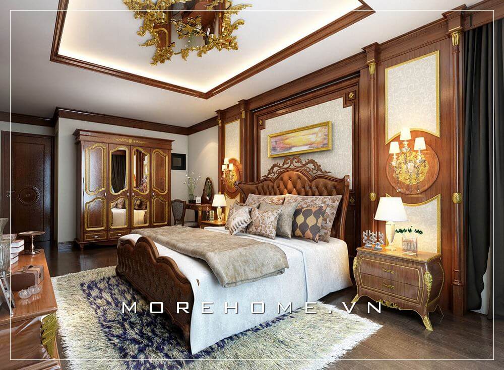 Mẫu giường ngủ chung cư cao cấp đầy ấn tượng, từng đường nét chạm khắc tỉ mỉ, cầu kì gợi lên một không gian nghỉ ngơi đầy sang trọng và quý phái